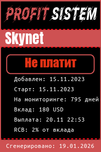 Skynet - Описание Выплаты Статистика проекта | Хайп мониторинг ProfitSistem | Блог о инвестициях и Хайп проектах | HYIP monitoring