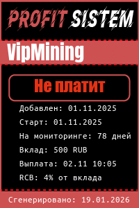 VipMining - Описание Выплаты Статистика проекта | Хайп мониторинг ProfitSistem | Блог о инвестициях и Хайп проектах | HYIP monitoring