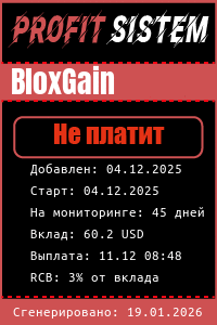 BloxGain - Описание Выплаты Статистика проекта | Хайп мониторинг ProfitSistem | Блог о инвестициях и Хайп проектах | HYIP monitoring
