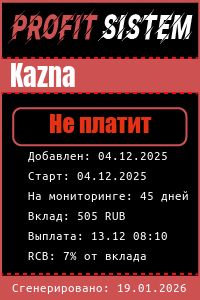 Kazna - Описание Выплаты Статистика проекта | Хайп мониторинг ProfitSistem | Блог о инвестициях и Хайп проектах | HYIP monitoring