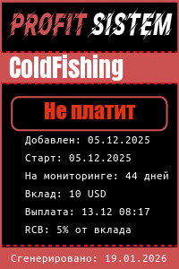 ColdFishing - Описание Выплаты Статистика проекта | Хайп мониторинг ProfitSistem | Блог о инвестициях и Хайп проектах | HYIP monitoring