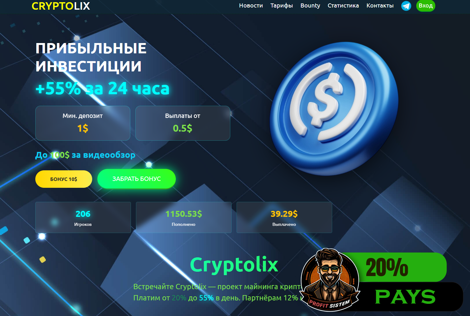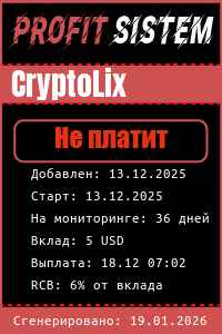 CryptoLix - Описание Выплаты Статистика проекта | Хайп мониторинг ProfitSistem | Блог о инвестициях и Хайп проектах | HYIP monitoring