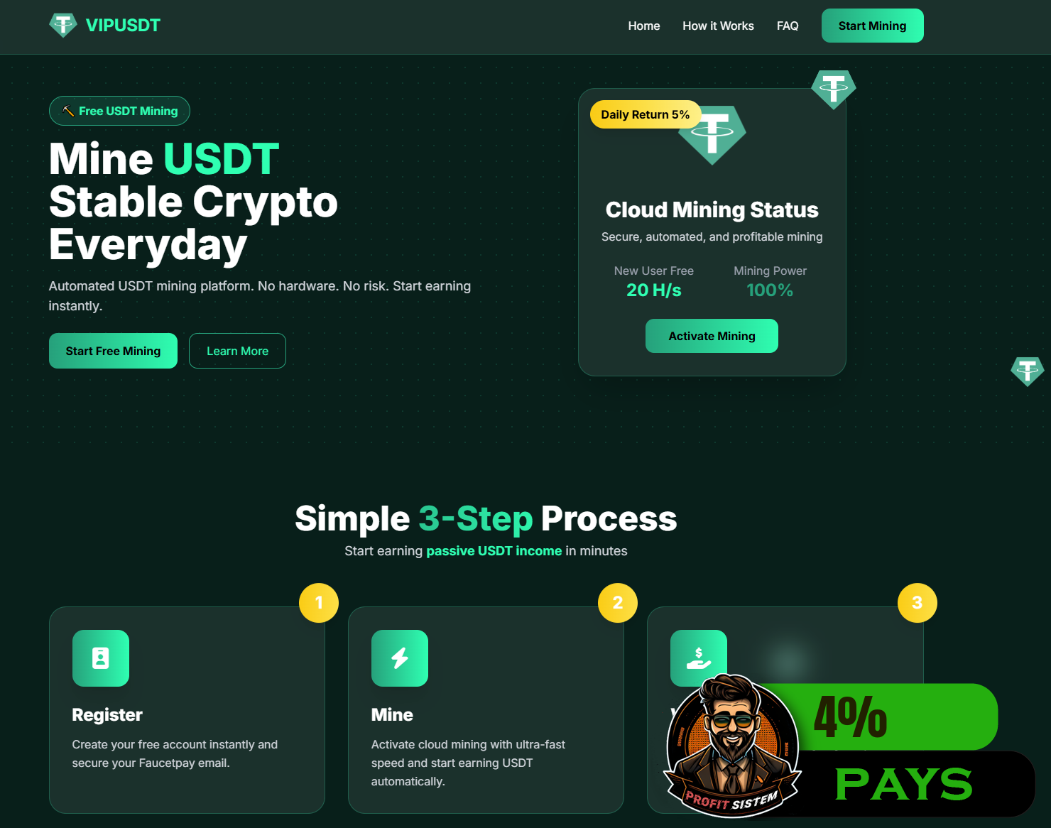 VipUSDT - Описание Выплаты Статистика проекта | Хайп мониторинг ProfitSistem | Блог о инвестициях и Хайп проектах | HYIP monitoring